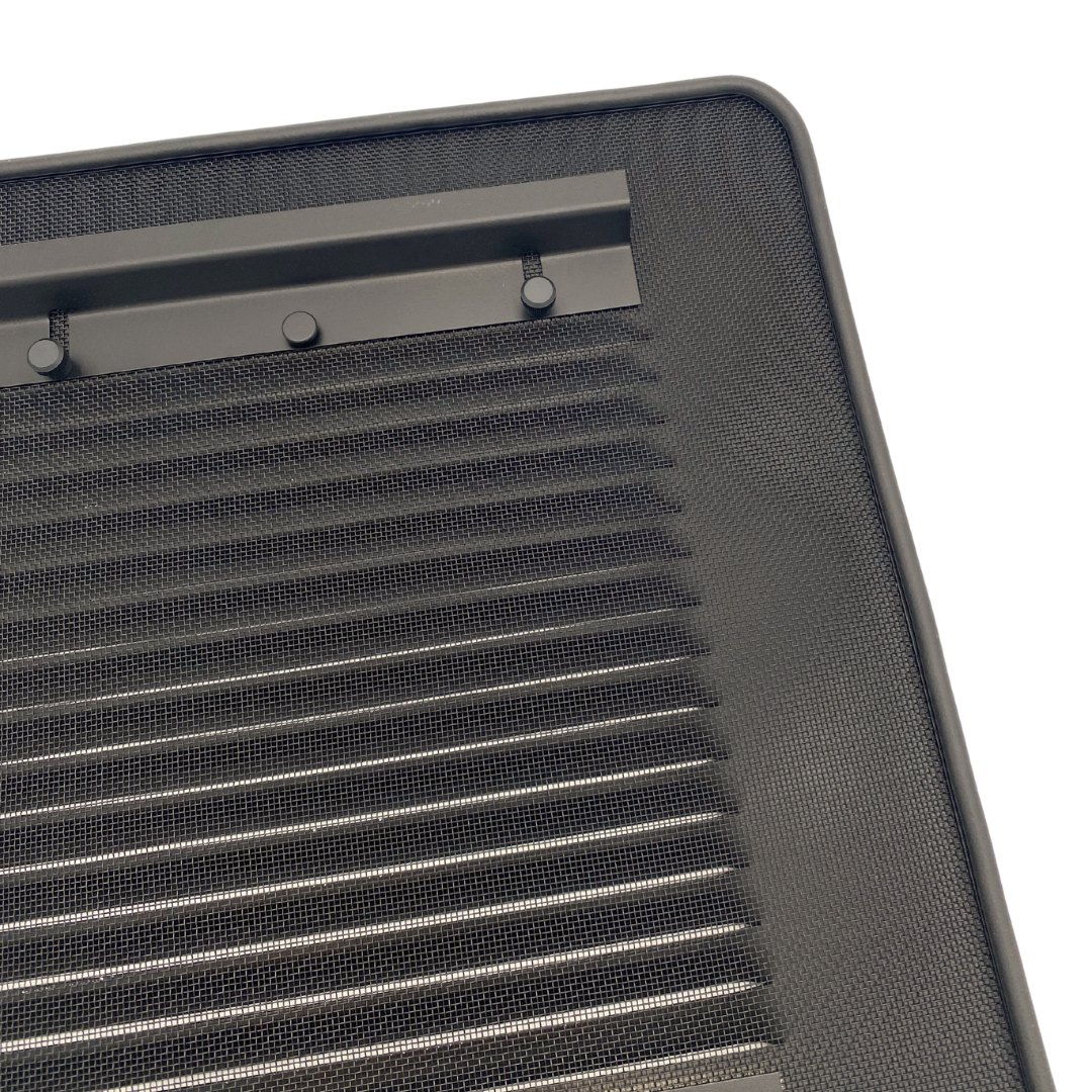 Das Lüftungsgitter wird bei geöffnetem Fenster in den Fensterrahmen eingesetzt und sorgt für steten Luftaustausch. Die Maschengröße des Gitters beträgt 1,5 x 1,5 mm.