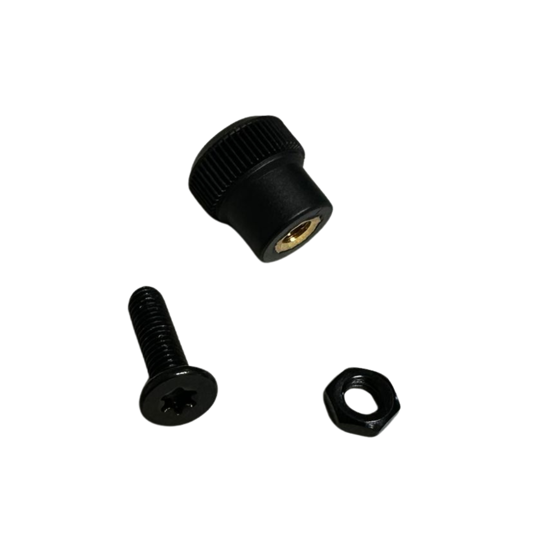 Es enthält eine Rändelschraube für werkzeugloses Anziehen, eine Standardschraube sowie die passende M5-Mutter.